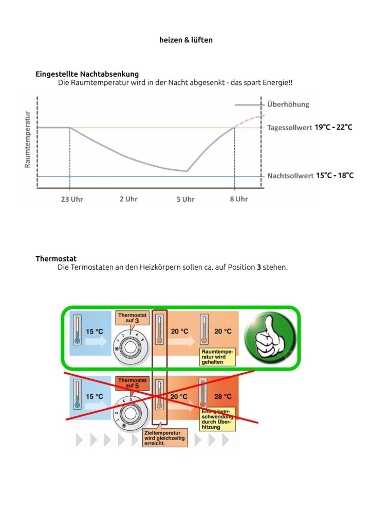 Die Temperatur der einzelnen Räume wird über die Termostatregler an den jeweiligen Heizkörpern eingestellt.