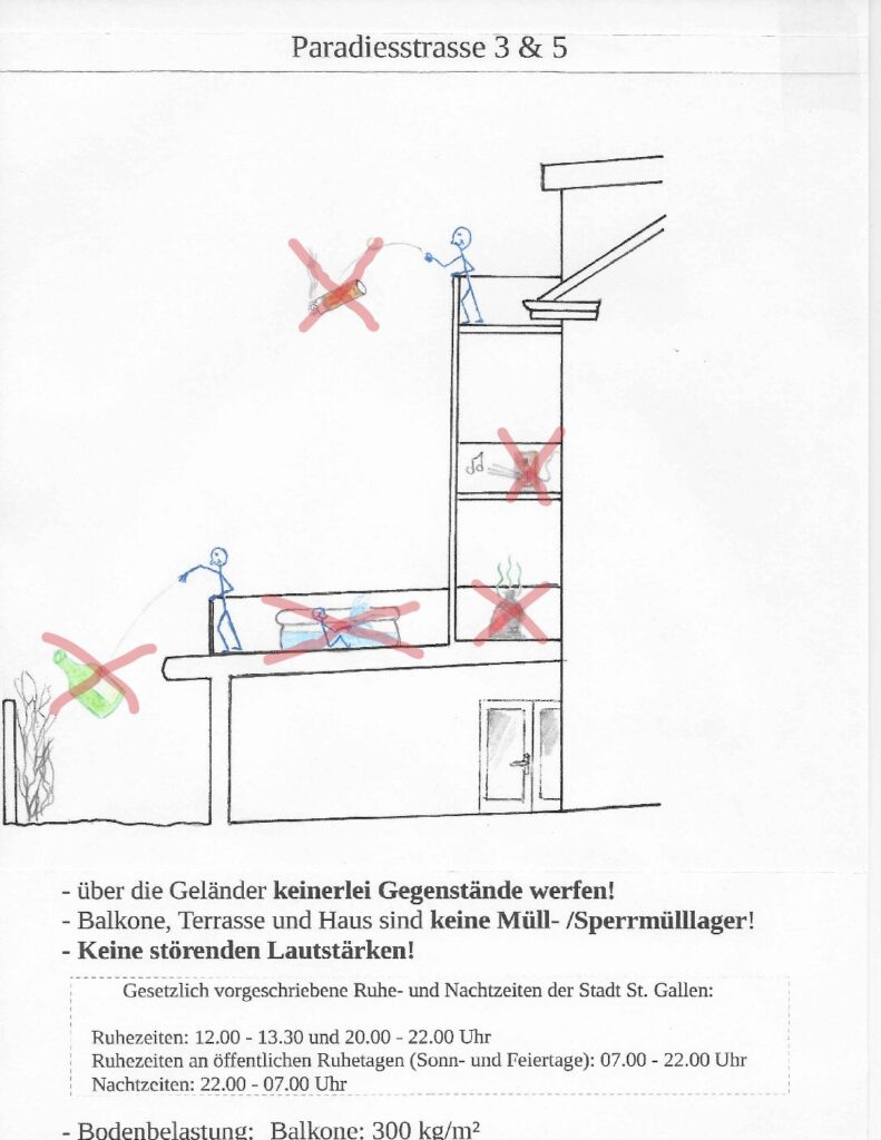 Bei einer aussergewöhnlichen Benutzung (Party) bitte Nachbarn vorinformieren!
