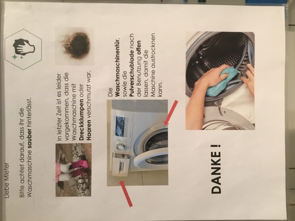 Vor Waschstart den Wasserhahn für die Maschine öffnen, nach Waschende wieder zudrehen.