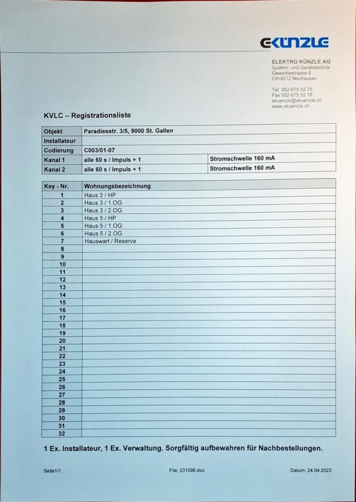 Die gezählten Stromminuten werden jeweils Ende eines Kalenderjahres ausgelesen und mit den Nebenkosten abgerechnet.